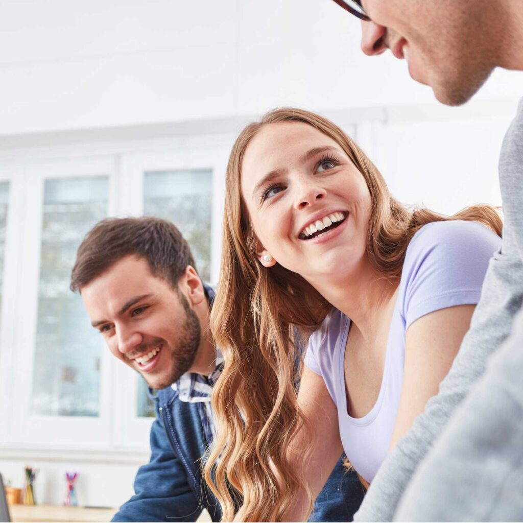 Stemningen er uformel, men vi tager vores faglighed alvorligt. Vi tror på, at det bedste resultat opstår, når vi deler viden, hjælper hinanden og har det sjovt undervejs.